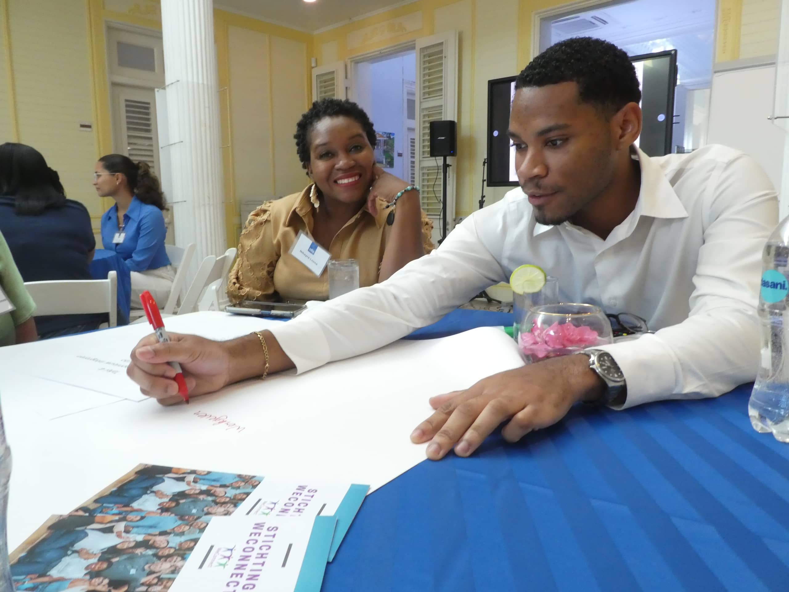 Een vijftal stellingen met elk een thema was de leidraad aan de rondetafelgesprekken: werkcultuur, remigreren, carrièrekansen, re-integreren en werving. In de vorm van speeddaten gingen de groepen in gesprek onder begeleiding van een begeleider van WeConnect of VNW. Aan het einde van de bijeenkomst werd de opbrengst gedeeld. Enkele knelpunten: te weinig transparantie rond sollicitatieprocedure, weinig kans om verticaal door te groeien en de mogelijkheid tot keuzebudget en ouderschapsverlof wordt gemist. Er waren ook mooie inzichten: “kies, ga en neem risico. Anders kom je nooit!” was daar een van. Ook werd geopperd om een vacaturebank te bouwen waar bedrijven zich aan kunnen melden, dat het Kabinet van de Gevolmachtigde Minister een grotere rol kan spelen bij het plaatsen van vacatures en dat professionals (landskinderen) uit Nederland competenties als assertiviteit goed hebben ontwikkeld.